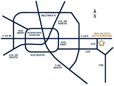 “The Texas Parks and Wildlife Department's 1,200-acre San Jacinto Battleground State Historic Site consists of the San Jacinto Battleground, Monument and Battleship TEXAS. These sites are located within minutes of downtown Houston and a short distance from the beaches of Galveston Island. Millions of visitors come to this area each year to enjoy the mild coastal climate and cultural and sports activities. Visitors experience history first-hand through living history at the San Jacinto Battleground and Battleship TEXAS.